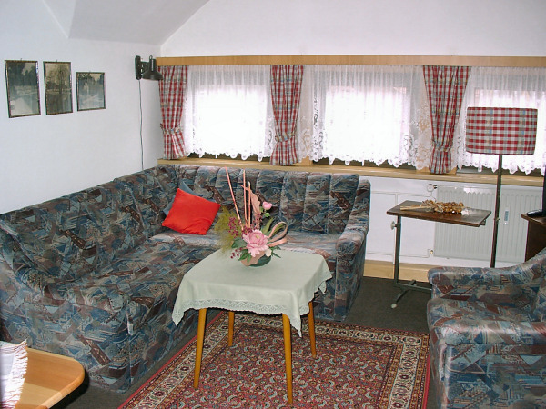 - Wohnraum mit bequemer Polstergruppe, Couch auch als Zusatzbett (Aufbettung) nutzbar